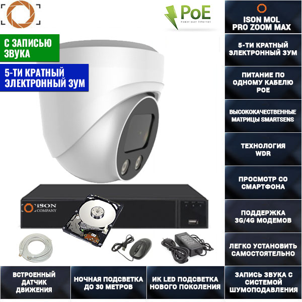 Характеристики системы видеонаблюдения ISON MOL PRO S ZOOM: