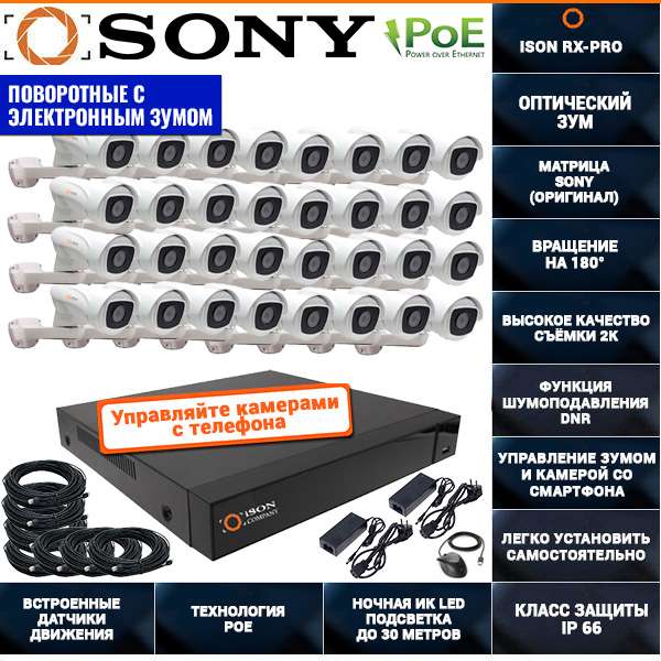 - 32 уличные поворотные IP камеры 5 мегапикселей с оптическим зумом PTZ ISON IP50SPTD4X;