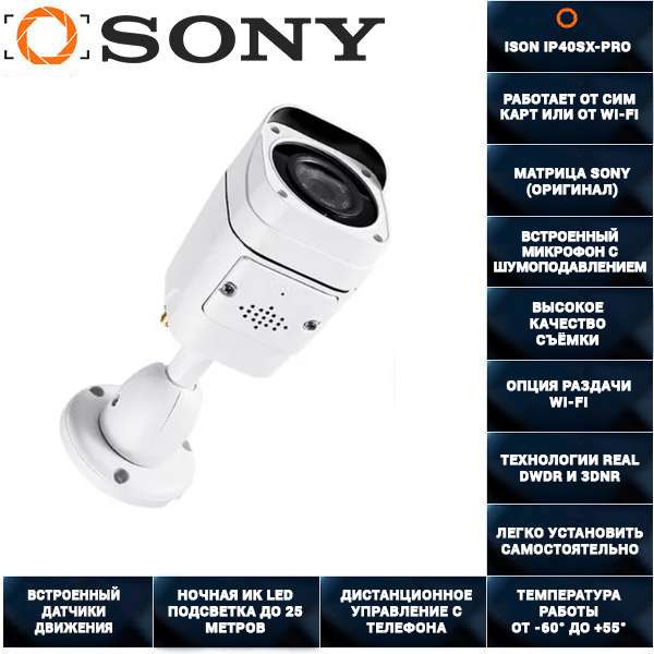 - Камера имеет высококачественную матрицу Sony (Оригинал);
